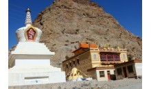 阿貴廟位于蹬口縣沙金套海蘇木境內(nèi)的狼山山脈中,坐落在漢代古城雞鹿塞西邊的溝內(nèi),是內(nèi)蒙古地區(qū)紅教喇嘛的唯一寺廟。蒙古語(yǔ)意為有山洞的廟。占地1500畝。清朝定名為“宗乘寺”。為典型藏式建筑,順山勢(shì)建成大雄寶殿及陪殿,共981間。阿貴廟奉其創(chuàng)始人印度僧蓮花生為祖師。