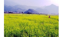 油菜花期,葉少枝繁,虬須互繞,姿豐勢(shì)旺。朵朵黃花巧著翠莖,緣下盤(pán)上,漸次綻開(kāi),撫枝細(xì)點(diǎn),單株菜花均超千朵,體碩株壯者則花數(shù)難計(jì)。當(dāng)微吹吹過(guò),花朵輕搖,田野里一望無(wú)際的金色花海便仿若一層層的波浪,高低起伏,不斷向游人涌來(lái),百里飄香。