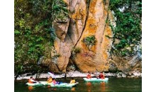 玉兔仙潭風(fēng)景區(qū)位于朗鄉(xiāng)局頭道溝林場,距局址56公里,占地6公頃,是新開發(fā)的集漂流、花卉觀賞、度假和水上游樂為一體的綜合性旅游景區(qū)。巴蘭河水平如鏡,全長108公里,在有著巴蘭河源頭第一漂美稱的玉兔仙潭,游客可自由選擇漂流距離,進(jìn)行驚險刺激的漂流活動。面對起伏的疊巖和兩崖之上浩瀚的林海,可體會到人與自然的融洽溝通。玉兔仙潭南側(cè)高峻的石壁上題寫著“玉兔仙潭”四個大字。