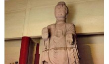 丈八佛石造像亦稱興國寺石造像,坐落在山東省博興縣城東南10公里處的寨郝鄉(xiāng)寨高村西北角,因其身高丈八,俗名丈八佛。佛像坐北面南,全高6.75米,底座高1.5米,底面積7.29平方米,為單身立式圓雕青石造像。佛像高肉髻,面方圓,微笑,豐頤大耳,法相莊嚴,身披“褒衣博帶式”通肩袈裟,內(nèi)著僧支祗,胸前打結,“施無畏與愿印”,赤足立于蓮花座上。