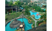 度假村四周群山起伏,層巒疊翠,風(fēng)光秀麗,景色迷人,充滿大自然的野趣。度假村占地面積100多畝,地下熱源達5平方公里。露天泉涌100多處,月流量近10萬立方米,其中一個泉眼,每小時流量60立方米。該度假村的溫泉水溫最高達80度以上,可將雞蛋燙熟,所以在諸多泉池里有個湯雞蛋小池,讓你可以邊泡溫泉邊剝燙熟的雞蛋來吃。溫泉水用作健身理療治病,在我國有近千年的歷史。