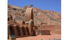 盤(pán)吉爾怪石林位于新疆維吾爾自治區(qū)托克遜縣克爾堿鎮(zhèn)境內(nèi)的盤(pán)吉爾塔格山山脊和山坡上,平均海拔1200米。東南距托克遜縣城55公里,距克爾堿鎮(zhèn)10公里。是由溶蝕和風(fēng)蝕作用形成的峰林地貌,被稱(chēng)為“盤(pán)吉爾塔格”。 “盤(pán)吉爾塔格”維吾爾語(yǔ)意為“像多孔窗子的山”。石林單體構(gòu)造一般為2~5米,大型的高度達(dá)十幾米,總面積約1平方公里。巖體多為石炭紀(jì)火山巖和角礫凝灰?guī)r,呈青灰或褐紅色,巖石中含豐富的碳酸鈣。