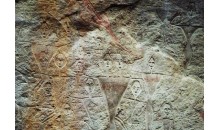 康家石門子巖雕刻畫是一幅國內(nèi)及世界上罕見的生殖崇拜巖畫。位于昌吉州呼圖壁縣的天山腹地, 兩條山溪匯流處的西北岸的新第三紀(jì)的粉砂巖壁上。巖面平整,距地表約10米上下。畫面東西長14米,上下高9米多,整個面積達(dá)120平方米左右。上面刻繪著二三百個大小不等,身姿各異的人物和動物。大者高 2.04米,小者19厘米。有男有女,或站或臥,或衣或裸,男女合圖、雙頭同體、三頭同體圖像。
