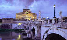 圣天使堡(Castel Sant’Angelo),位于意大利羅馬臺伯河畔,古羅馬地區(qū)的最西端,又稱哈德良陵墓(Mausoleo di Adriano).有數(shù)條橋可通往臺伯河西岸,較重要的一是伊曼紐爾二世橋(Ponte Vitttorio Emanuele Ⅱ),另一就是前往圣天使堡的著名橋梁(Ponte Santa Angelo)。