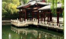 龍?zhí)?,位于濟南舊城西門外,洛源橋北,南臨趵突泉,北接大明湖。潭周名泉眾多,形成五龍?zhí)度?,為濟南四大泉群之一,?nèi)有泉池二十七處。公園的建園風格兼具有南北造園之精華,是以潭池溪港等景觀構成,質(zhì)樸野逸為特點的園林水景園。此水域風景秀麗,柳絲醮波,鳴禽啾啾,荇藻漂浮,錦魚嬉戲,素有“夾岸桃花,恍若仙境”之美譽,風景幽雅獨具特色