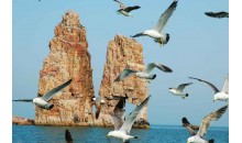 石帆礁海拔204米,是廟島群島的最高點(diǎn),如同巨大的龍角從大海鉆出,直刺云天,山頂上鷗鳥盤旋、奇石林立,島周圍洞、礁、奇石遍布,并列矗立的姊妹峰巍然不動(dòng),在風(fēng)浪的烘托之下,遠(yuǎn)遠(yuǎn)望去酷似激流勇進(jìn)的風(fēng)帆。
