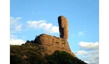 磬棰峰位于承德市內(nèi)武烈河之東岸。承德名山之一。山有巨峰,猶如農(nóng)婦洗衣時(shí)用來衣服的“棒槌”, 故又稱棒錘山。磬棰峰山峰挺拔高約59.42米,棒錘高38.29米。磬棰峰它是在長(zhǎng)期的風(fēng)化作用下,巖石不斷崩塌,因砂礫上下層巖性不一致,而形成了上粗下細(xì)的石挺。磬錘峰亭亭玉立,挺拔秀麗,磬棰峰與避暑山莊內(nèi)的“錘峰落照”亭遙遙相對(duì)。